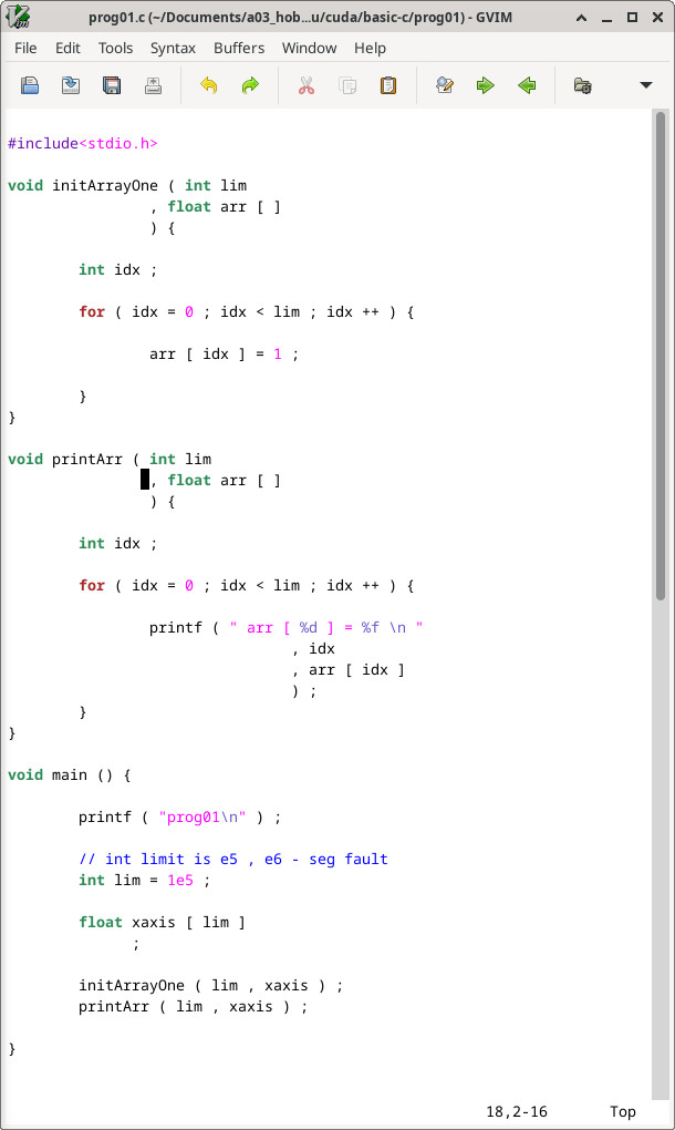 We dial up the array size up to 6 before noticing the program crashed reporting the error: segmentation fault. Our limit is 100k.