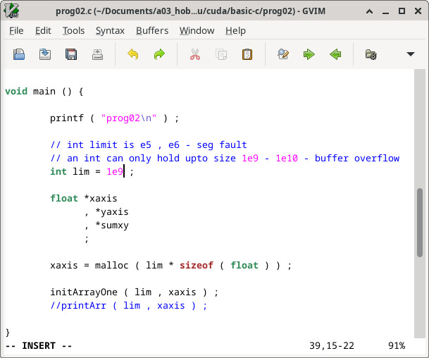 We can use a long instead of an int. That would overcome our buffer overflow error limiting factor. Then we find yes, even with pointers, there is a limit, we get error - segmentation fault with e10.